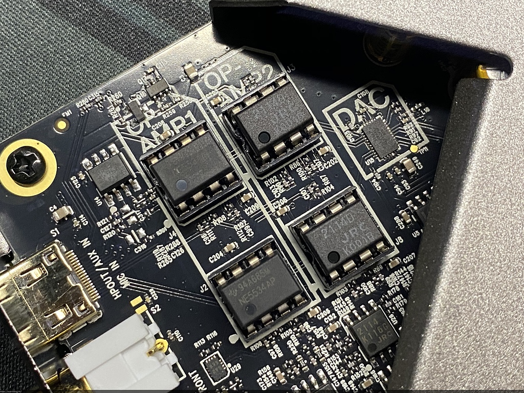 OP-Amp1部分為單OP,搭載德州儀器的NE5534AP,OP-Amp2的部分為雙OP,搭載JRC的NJM2114D。