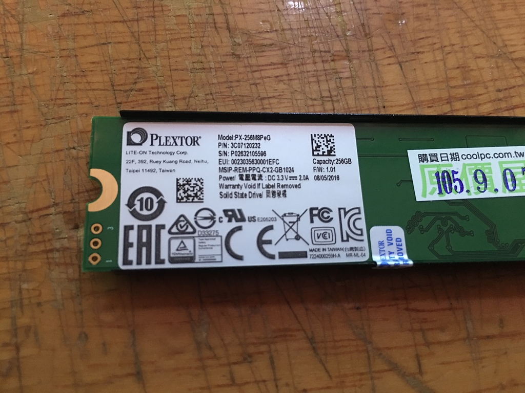 Plextor M8PEG 256GB PCIE SSD 開箱